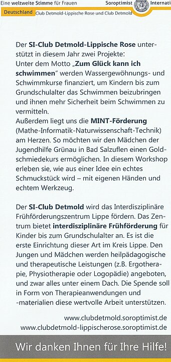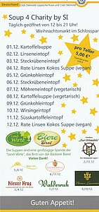 Die beiden lippischen Soroptimist-Clubs Detmold und Detmold-Lippische Rose machen auf dem Detmolder Weihnachtsmarkt im Schlosspark wieder gemeinsame Sache: „Soup4Charity“ lautet die Devise, die Mitglieder der Serviceclubs verkaufen Suppe und Heißgetränke für gleich mehrere gute Zwecke. Der Stand, dieses Jahr am Muschelbrunnen, gehört schon seit Jahren zum Weihnachtsmarkt in der Residenz und hat viele Stammgäste.